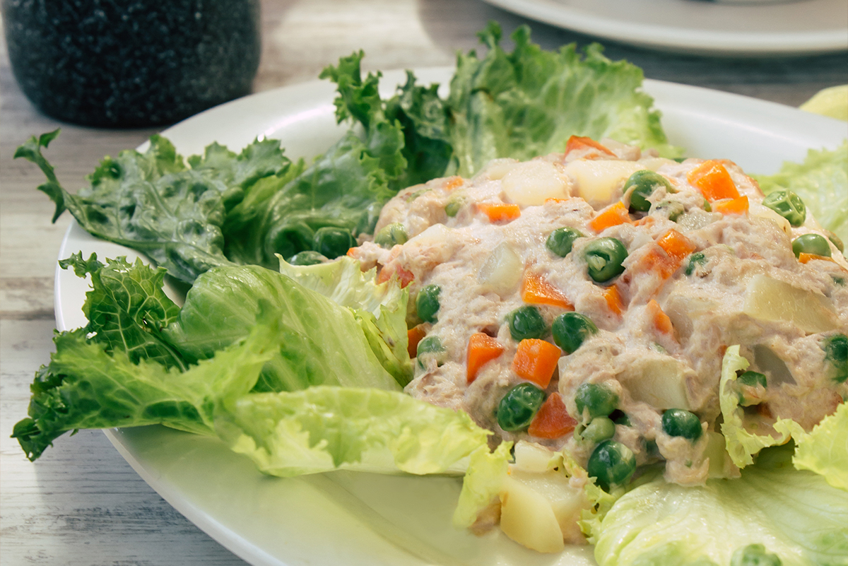 Pechuga de pollo deshebrada, arroz a la mexicana, rábano, cilantro y aguacate.