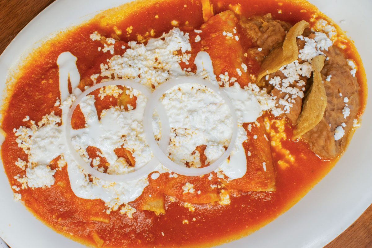 Orden de cuatro. De mole, verdes o rojas de pollo con frijoles refritos.