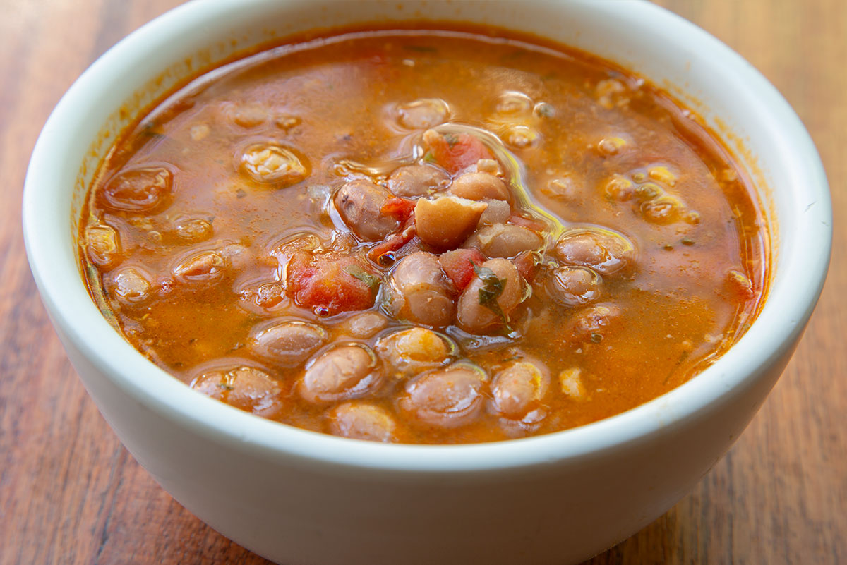 De la olla, con tocino, chorizo, cebolla y chile serrano.
